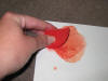 ● Begin by putting a small amount of paint on the end of the brush handle.